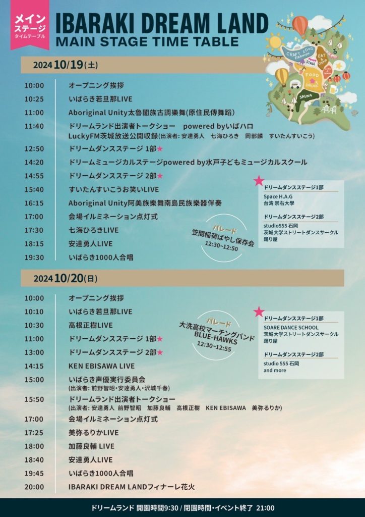「IBARAKIDREAM LAND2024」タイムテーブルのお知らせ